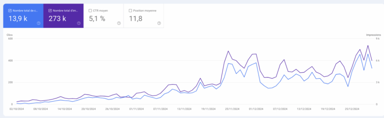 Projet blog « Les Brunchés » – Résultats de la création en octobre à décembre 2024 – jusqu’à 400 clics par jours